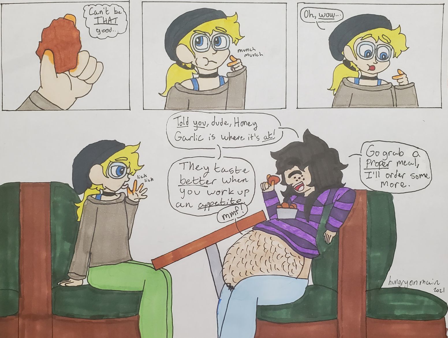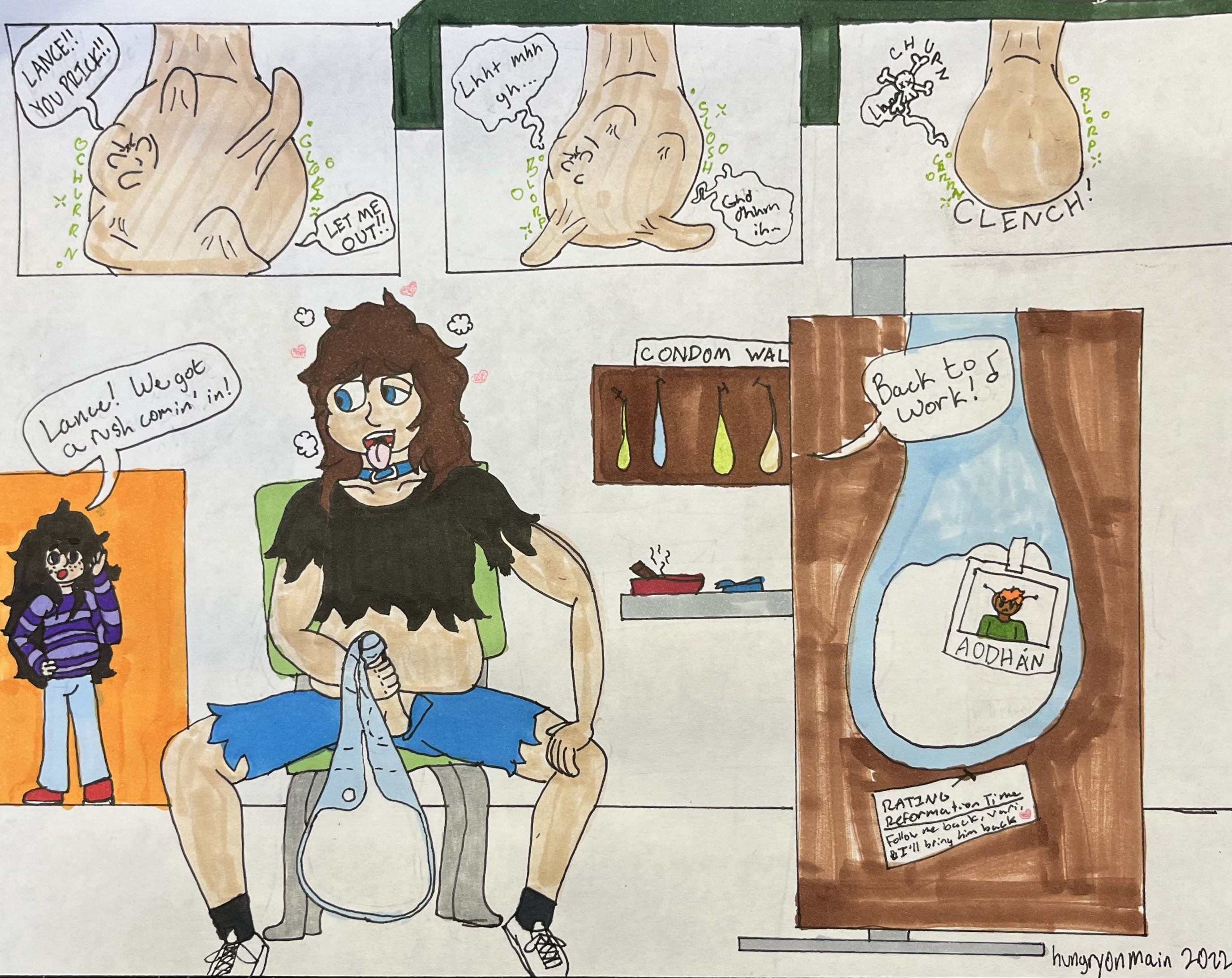The Bar is a setting I created for my characters to hang out in. They're all housemates, and a few of them work in the same pred bar. It's basically a sitcom a la Friends, but hornier. You can read some of the stories about The Bar on AO3. If you're here, you're probably here for the comics.